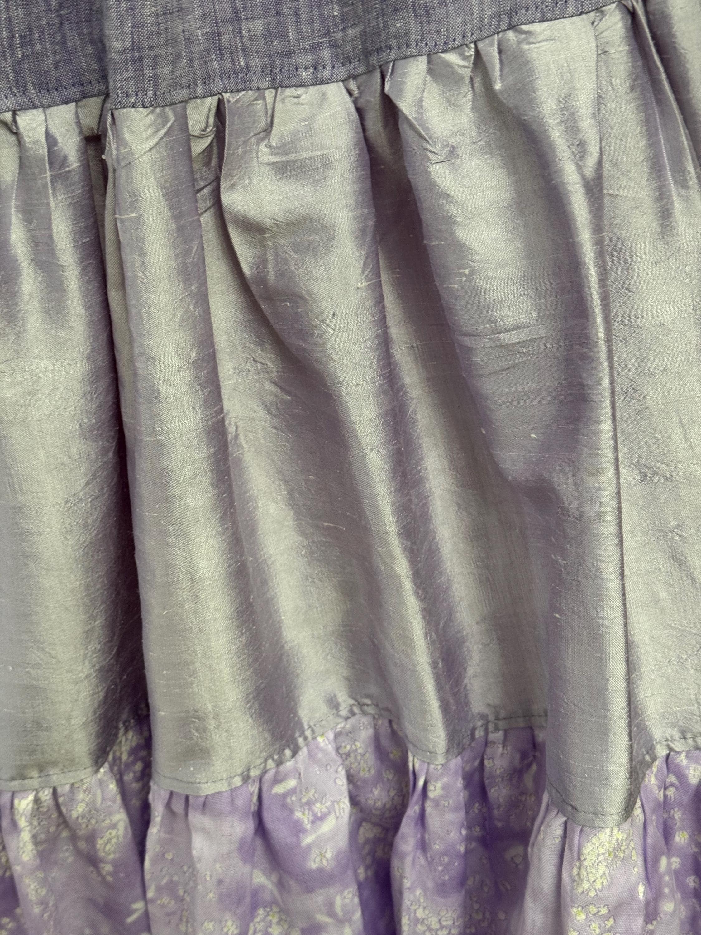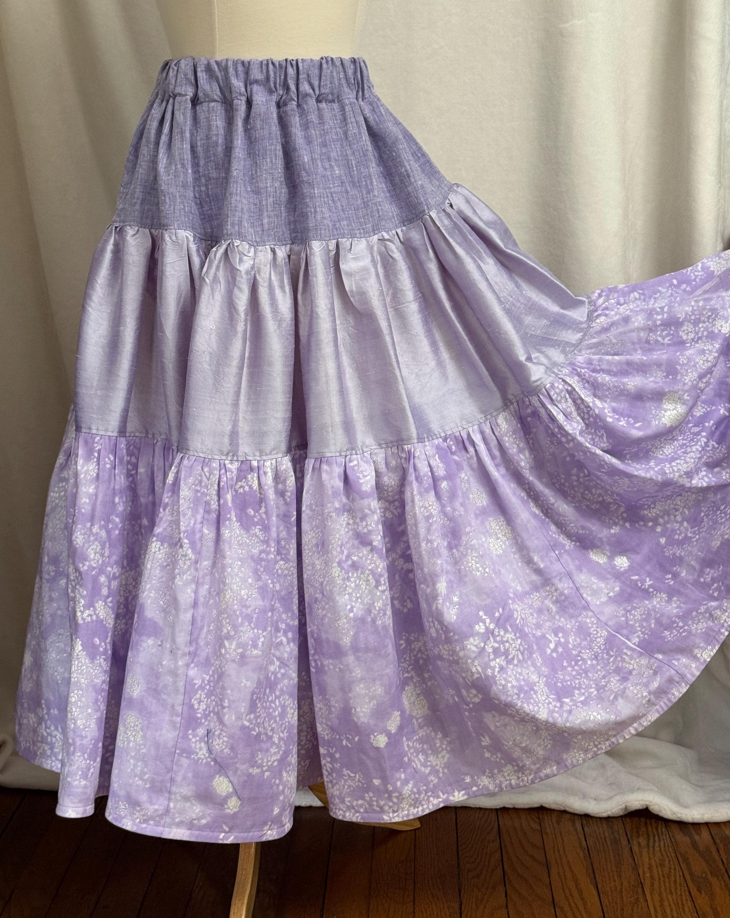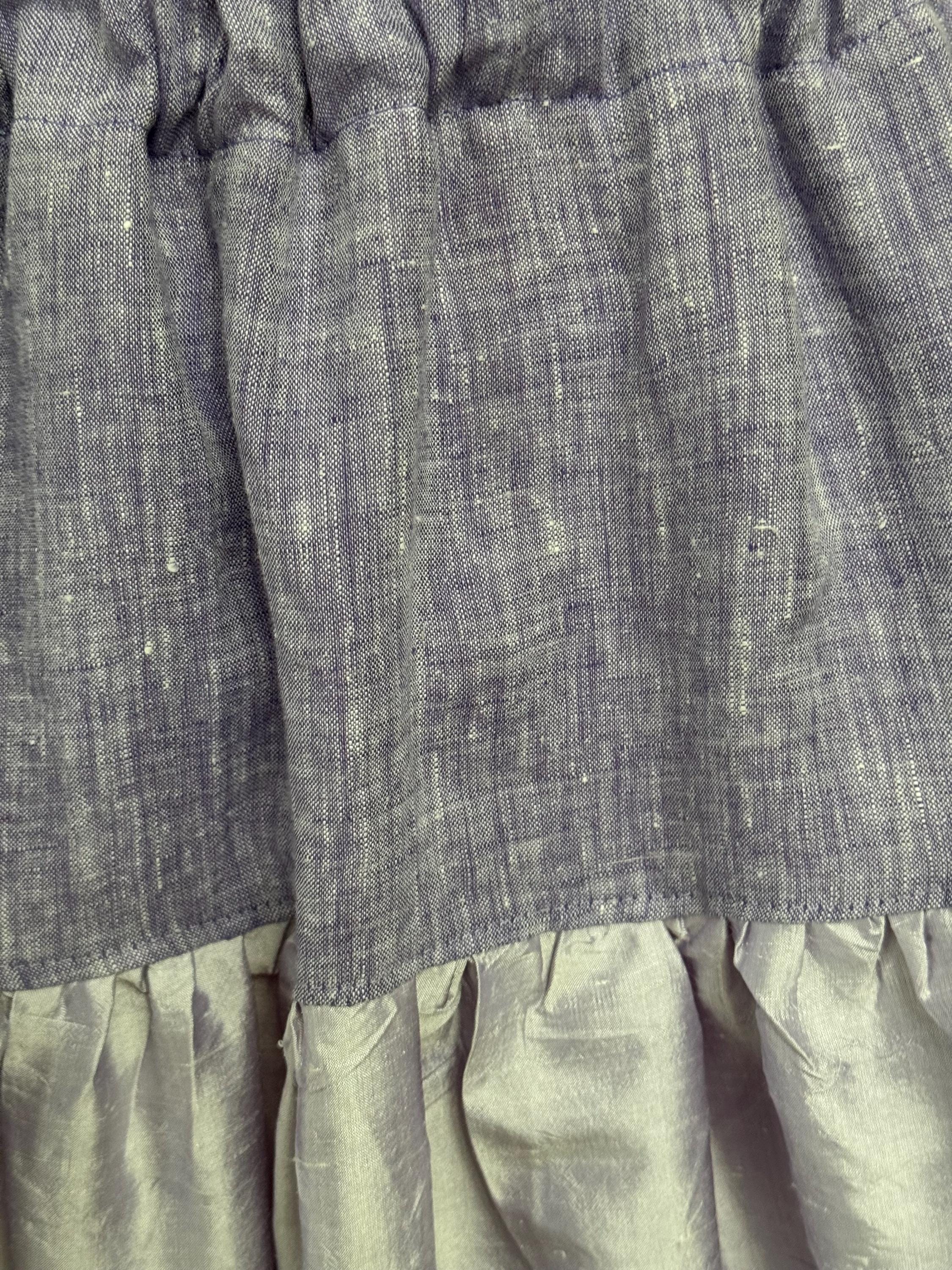 Every "Ruckus Original" is a totem of energy, a wearable reminder to support your self-expression, ease, and play. This garment's bio: "Meet Liloria. Liliora is a soft gleam in a quiet moment. She’s resilient in the way morning is: steady, luminous, and unstoppable. Naturally, she brings light everywhere she goes. " 35 inches long | Waist stretches from 28–46 inches | Japanese cotton & Silk Dupioni | Machine wash cool, tumble dry low
