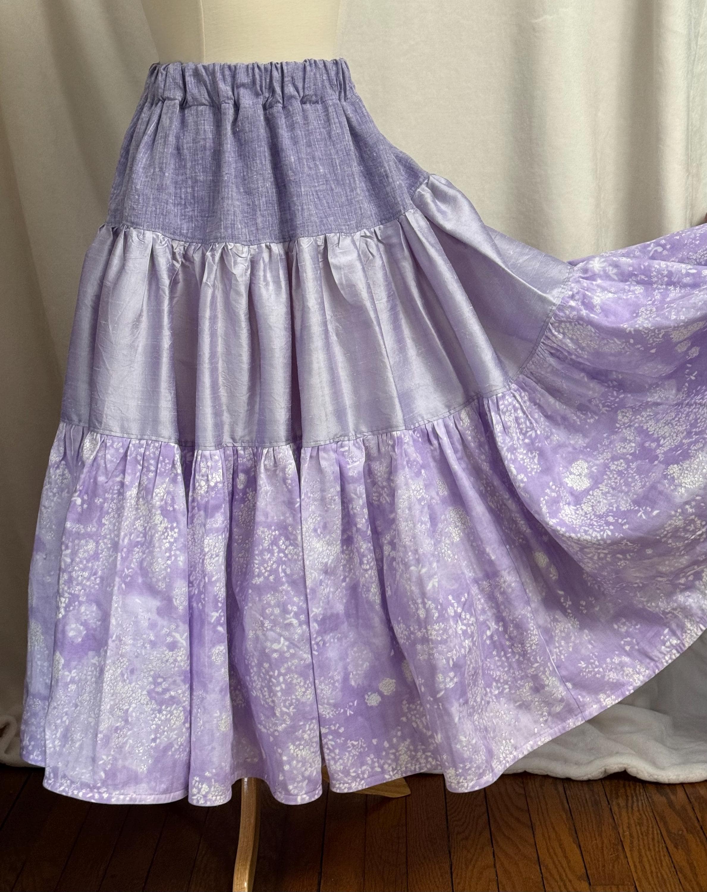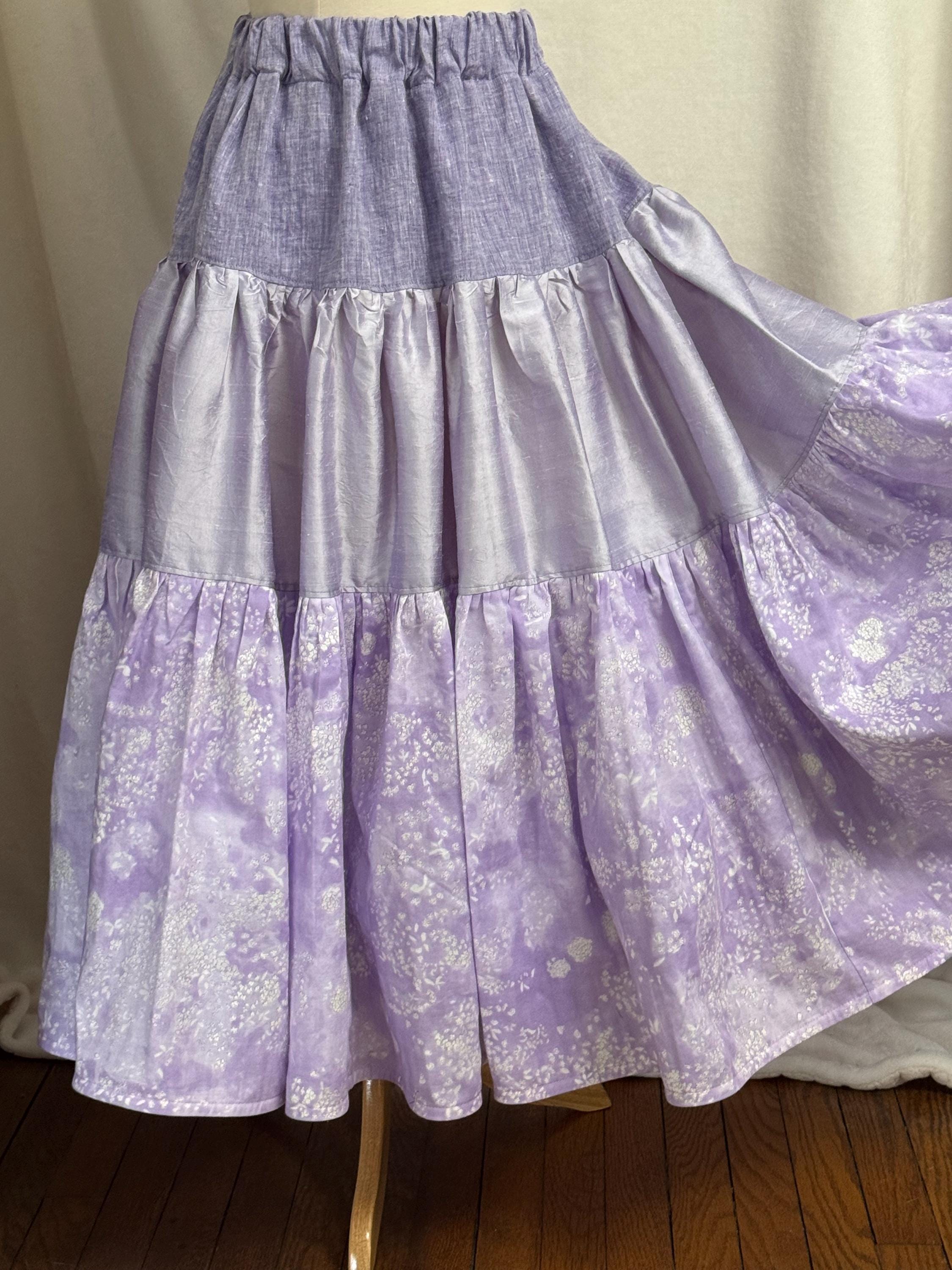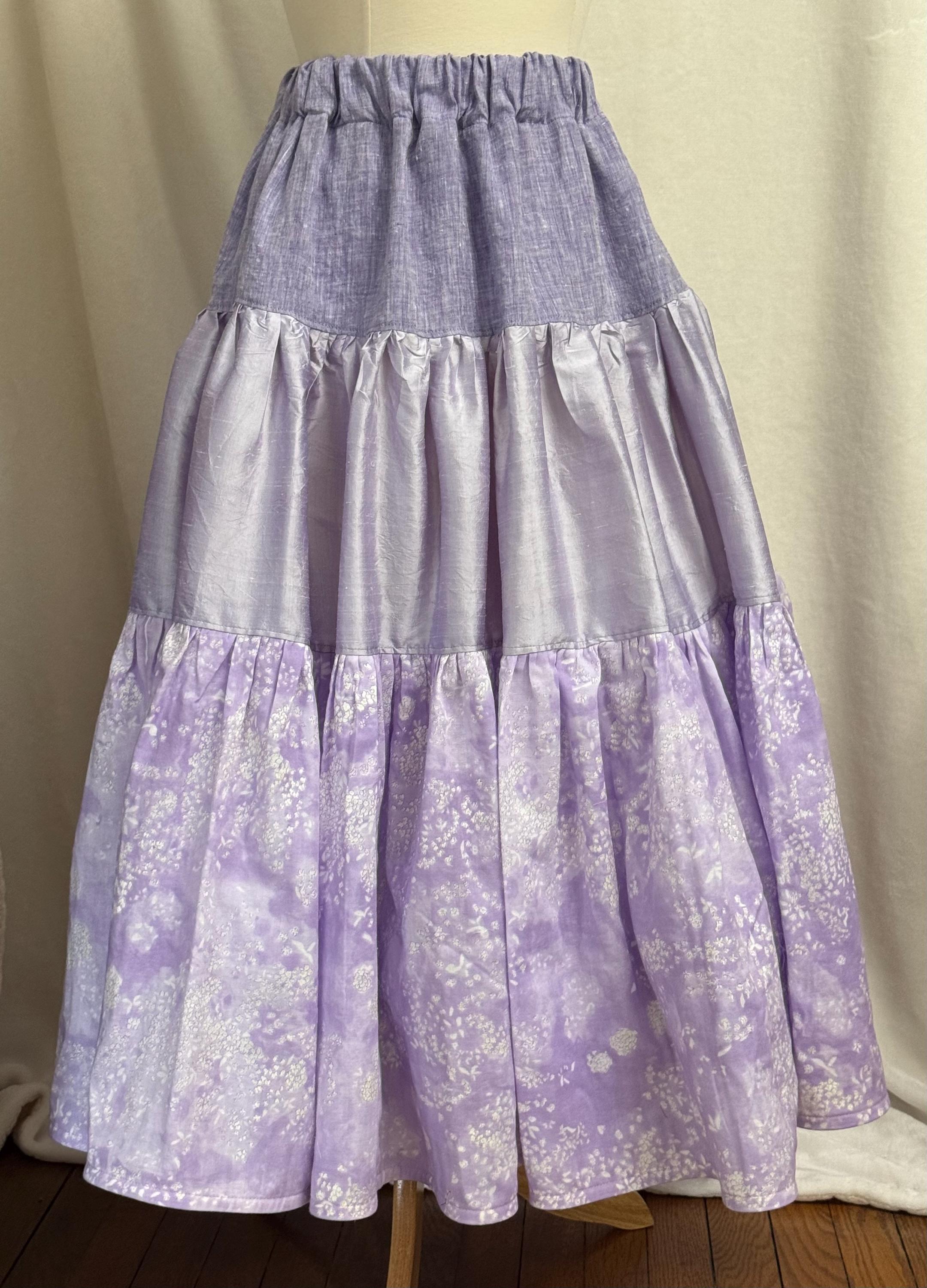 Every "Ruckus Original" is a totem of energy, a wearable reminder to support your self-expression, ease, and play. This garment's bio: "Meet Liloria. Liliora is a soft gleam in a quiet moment. She’s resilient in the way morning is: steady, luminous, and unstoppable. Naturally, she brings light everywhere she goes. " 35 inches long | Waist stretches from 28–46 inches | Japanese cotton & Silk Dupioni | Machine wash cool, tumble dry low
