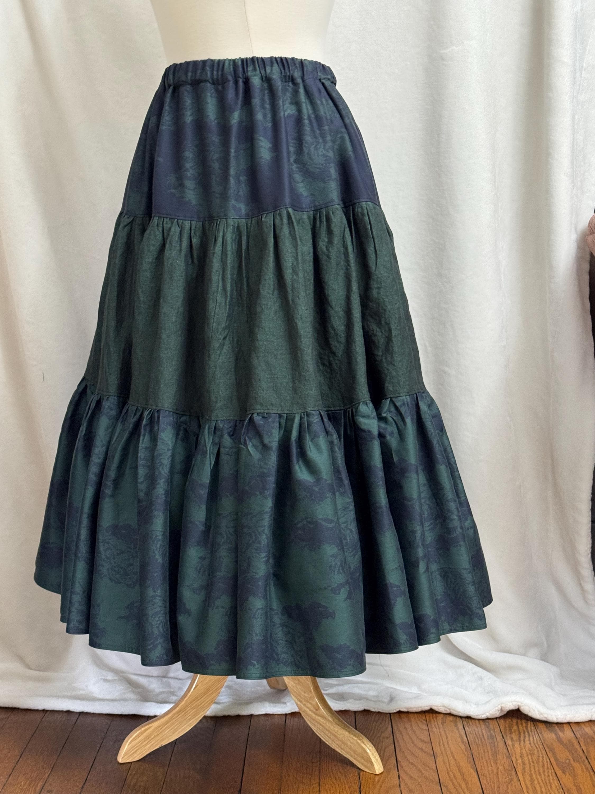 Every "Ruckus Original" is a totem of energy, a wearable reminder to support your self-expression, ease, and play. This garment's bio: "Meet Shadotora. The Japanese word for tiger is Tora. Like the tiger hidden in her design Shadotora is good at keeping secrets. She is elegant, quiet, composed but ready to pounce when you are. " 35 inches long | Waist stretches from 28-46 inches | Linen | Machine Wash cool, Tumble Dry low